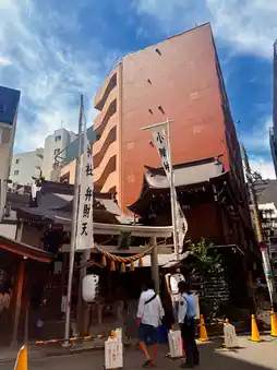 This shrine, nestled among the skyscrapers of Ningyocho, Tokyo, has stood for over 500 years. Despite its small size, its fame is immense. Its survival during the air raid, coupled with the survival of the soldiers who guarded the shrine, has fueled widespread legends of its good fortune.