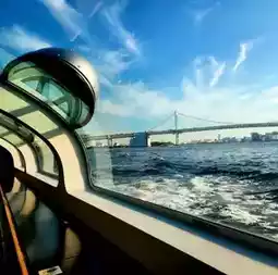 The highlight? I hopped on a water taxi cruise from Odaiba to Tokyo. The boat came through with sweet air-con (saving my life during the summer heat), and the views were next-level. Sunset over the city, clear blue sky, city lights starting to glow—it’s honestly a dream combo. 🌅✨