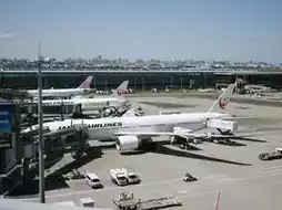 Haneda Airport in Tokyo, Japan, has four runways for takeoff and landing. Each terminal offers up-close views of aircraft taking off and landing.