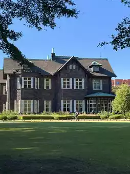 The contrast between the lawn, Western-style building, and blue sky is stunning!