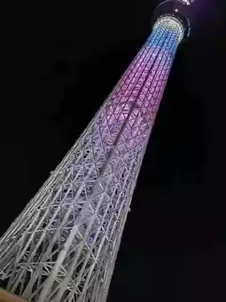 Inside, explore Skytree Town, home to Tokyo Solamachi Mall, aquarium, and cozy cafés serving treats with sky-high views 🍰☕. At night, the tower glows beautifully in shifting colors, creating a stunning symbol of modern Japan 💫.