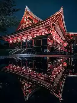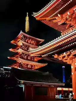 Visit during evening hours to see the temple beautifully illuminated under the Tokyo night sky 🌙✨.