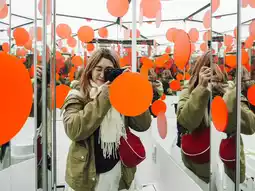 You’ll see her vibrant dot paintings, surreal sculptures, and of course, the legendary Infinity Mirror Room, where reflections stretch endlessly in every direction. The top floor often hosts a small reading area or space to view the city from above, offering a quiet contrast to the colorful chaos below.