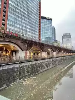 Walking through the red-brick tunnels, you can still feel the echoes of the station’s history. The arched passageways and rounded windows frame views of the Kanda River — a mix of nostalgia and modern Tokyo that’s truly captivating.