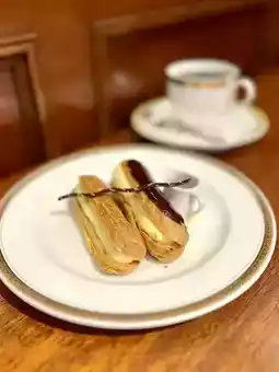 #ginza #tokyocafe #tricoloreginza #morningcoffee #tokyomorning #classiccafe #eclair #coffeetime