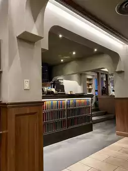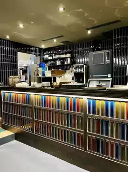 Before entering the café, you’ll find a small book corner — but here’s the twist: all the books are wrapped so that you can’t see the title or cover. Each one comes with only a short description, inviting you to choose by imagination. It’s such a charming concept that turns reading into a small adventure.
