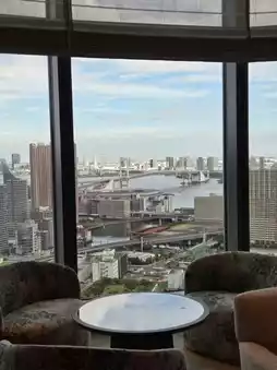 The hotel offers breathtaking views of the Rainbow Bridge and Tokyo Tower, with spectacular scenery from the rooms, lounge, and pool.