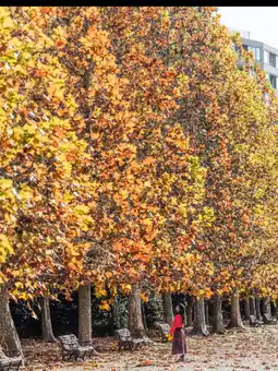 In particular, the carpet of plane trees in autumn, along with the evenly spaced benches, creates a truly magical space that feels like a scene from a movie. ✨✨