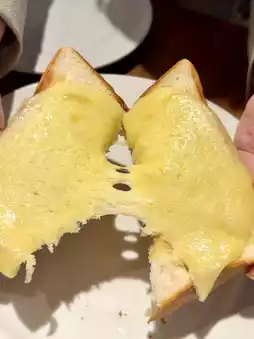 The interior has a charming, minimal yet warm design — wood accents, soft lighting, and an inviting aroma of freshly baked bread fill the space. We ordered the cheese toast and a cup of coffee, both simple yet perfectly executed. The toast was crisp on the outside, fluffy inside, and full of rich, comforting flavor.