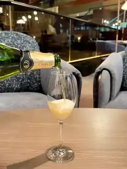 We enjoyed a non-alcoholic sparkling wine and a sweet, creamy café latte topped generously with whipped cream. The combination was delightful — just the right balance of elegance and comfort.