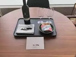 3) There is a free lounge with soda juice, coffee, cake and cookies in the room.