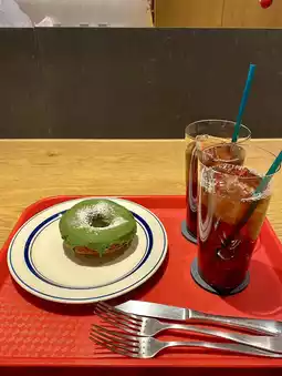 I ordered the matcha donut, and it was delicious: crispy on the outside, fluffy inside, and coated with rich matcha chocolate. The balance of sweetness and slight bitterness was just perfect.