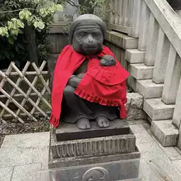Since the enshrined deity of Hie Shrine, Oyamakui-no-kami, is a monkey, the shrine grounds are home to adorable statues of the divine monkey "Masaru" (Masaru), rather than guardian dogs. The sound of "Masaru" (Masaru) is reminiscent of the Japanese characters for "evil to go away" and "to win," so it is believed to ward off evil and bring good luck. Furthermore, the "monkey" (En) is associated with "en" (fate), bringing good relationships and business prosperity. Many people visit the shrine seeking its power. In particular, statues of a mother and father monkey holding their baby are enshrined in front of the main shrine. The mother monkey is said to grant safety in the home, easy childbirth, and fertility, while the father monkey is said to grant prosperity in business, protection from misfortune, and good relationships. It is customary to stroke them and make a wish.