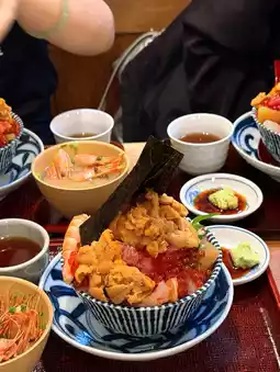 Located in Tokyo's Mungyeong Ward, Edo Fuji is a restaurant renowned for its sushi and seafood rice bowls featuring fresh seafood. The exquisite seafood rice bowl, in particular, boasts a generous portion of over a dozen different seafood varieties, including haddock, salmon roe, and shrimp, offering a feast for the eyes and taste buds.