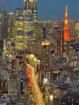 Tokyo Tower is a 333-meter-tall communications and observation tower in central Tokyo, inspired by the Eiffel Tower. It offers panoramic city views from its main and top decks, especially stunning at night when illuminated.