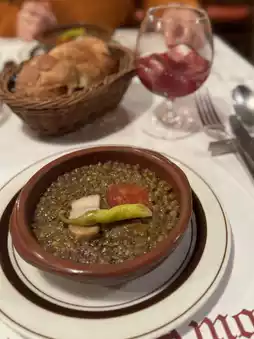 The appetizer platter of tapas features classics like jamón, chorizo, and tortilla. The stewed lentils, simple yet deeply flavorful, paired perfectly with the warmth of the soup on a winter night.