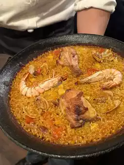 For the main course, the signature dish is paella. The rice, infused with the rich flavors of seafood, combined with the savory aroma of shrimp and chicken, delivers happiness in every bite.