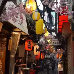 A narrow alley of tiny, intimate bars known as "Drunkard's Alley," located near Shibuya Station in Shibuya-ku (exit the station toward the Hachiko side and walk east).