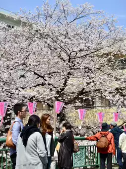 The Meguro River, especially during cherry blossom season, is a sight beyond description. The pink hues stretching across the flowing river make your heart race. It's a bit quieter than the more well-known Chuo-Kuro section, making for a leisurely stroll. Travel Tips