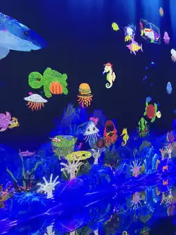 • Interactive artworks: Many zones utilize projectors, computers, and sensors that detect visitor movement, creating environments that change in real time as you walk through or touch them.