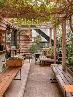 The ground floor semi-open-air location with green plants is like a tree house 🏡