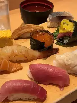 The omakase menu features the freshest seasonal fish sourced daily from Tokyo’s Toyosu Market, each piece prepared with impeccable timing and delicate care. 🍶 From buttery otoro (fatty tuna) to perfectly seasoned rice, each sushi melts in your mouth — a true taste of harmony. 🍣💫