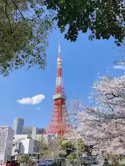Finally caught Tokyo Tower beneath the cherry blossoms