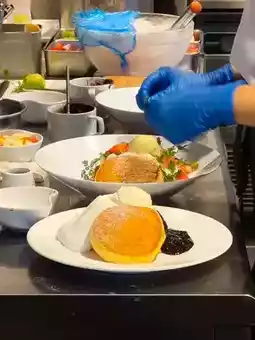 This time I ordered tiramisu flavored pancakes. The rich tiramisu sauce was paired with fluffy fresh cream and vanilla ice cream. It was sweet but not greasy, and every bite was full of happiness. The classic original muffin is the perfect interpretation of the ultimate muffin, drizzled with honey and paired with fresh cream on the side. It is simple but never monotonous.