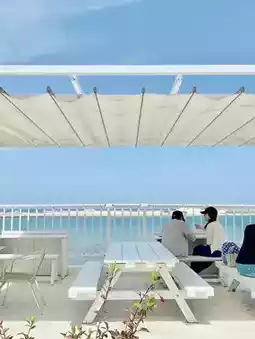 It's a great place with a white stepped building against the backdrop of the refreshing blue sea, giving it a mini Santorini feel.