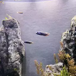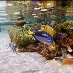 - Transparent undersea tunnel: schools of fish swim underfoot