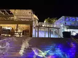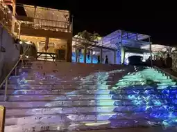 Every hour, the staircase illuminates with vibrant light projections, accompanied by changing sound effects, creating a scene that evokes the night sky's constellations descending to the earth. The rhythmic flow of light and shadow creates a magical "Stairway to the Stars," showcasing mythical and natural elements like Pegasus, dolphins, and eagles.