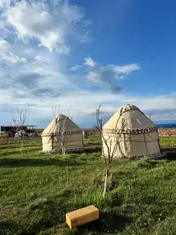 The Yurt Camp on the shores of Lake Issyk-Kul in Ton Village is an oasis of tranquility and adventure, offering travelers a unique opportunity for relaxation. Situated by the magnificent Lake Issyk-Kul, the camp allows guests to enjoy the beauty of the surrounding mountains and the blue waters of the lake.