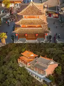 In the afternoon, climb the steps up Mount Xiu🌿, where ancient cypress trees line stone steps worn smooth by the passage of time. The Ming dynasty entrance gate of Yongjin Temple still stands tall, with the plaque reading "Most Beautiful in Southern Yunnan" reflecting shifting cloud shadows. The Qingleng Terrace halfway up the mountain is perfect for a rest; from the railings, you can see the overlapping gray-tiled roofs of the ancient town, like boats anchored in a sea of time.