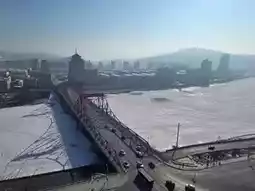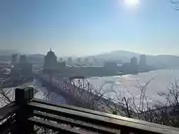 Passing the entrance of Weihuangshan Park, I climbed up a high hill and looked around the view of Tonghua City, and even saw the river water frozen over so I could skate freely!