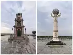 Fifth stop: Riverside Park. Walking along the river from Sanjiangkou National Wetland Park, we reached the core scenic area of Riverside Park. Built in 2010 along the tributary of the Songhua River, the 6,230-meter-long park features a large relief wall, calligraphy stele forest wall, Educated Youth Square, Bell Tower Square, and Umbrella Pavilion Square. Exploring it in the rain added a unique charm!