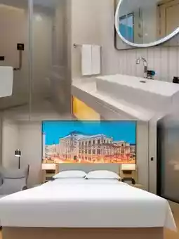 🏨 From the moment I arrived, I was captivated by the hotel's grand exterior, a perfect blend of simplicity and elegance. The lobby is spacious and bright, with a gorgeous crystal chandelier casting a warm glow, complemented by European-style decor – truly stylish. The front desk staff were welcoming and efficient, and check-in was a breeze. They even provided helpful tips on nearby attractions.