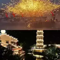 As night falls, the water town puts on another charming look. The bonfire party scene is very lively, the raging flames reflect people's bright smiles, everyone holds hands, sings and dances around the bonfire, and releases the joy in their hearts. The melodious sound of opera came from the ancient stage, and the wonderful performances of the actors made people mesmerized. Longmen Bridge looks particularly solemn under the illumination of lights, and the Republican style street seems to pull time back to that turbulent era. The Wind and Rain Bridge is like a dream castle in the night, and the water of the Great Lake is sparkling, reflecting the lights and buildings on the shore, as beautiful as a poem. Wenchang Pavilion and Wenchang Street exude a strong cultural atmosphere, and Wanfeng Ferry, Xiyan Building, Wanfeng Tower and Yuanlou are like bright pearls, inlaid in every corner of the water town under the embellishment of lights.