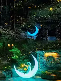 12 Views of Yi Jiangnan: Take the escalator to overlook the beautiful scenery of the entire town; then take the slide down to experience excitement and fun. When night falls, the lights illuminate the green world, and the small animals begin to "gather", which has a special flavor.