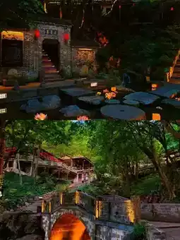 Hui-style architecture scattered among the mountains. During the day, stroll through the "Jiangnan Flavor" old street with stone slab roads and red lanterns full of atmosphere; the night tour is even more amazing! Mountain cottages wrapped in light strips, lotus lanterns floating on ponds, and the stone steps of "Hanshan Liao" hiding light and shadow surprises, as if stepping into a fantasy world🌌