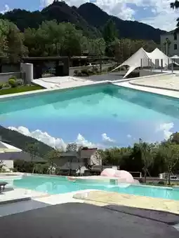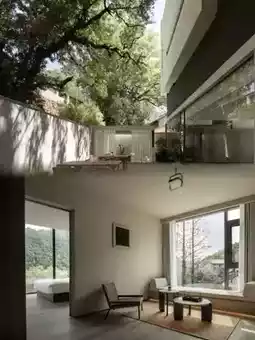 Masterminded by renowned designer Shen Mo ✨! Geometric "giant building blocks" facade with sleek, imaginative lines 🏙️. Expansive glass walls frame nature indoors, blending stone/wood materials with mountain-water vistas 🌿—where modern aesthetics meet pastoral poetry!