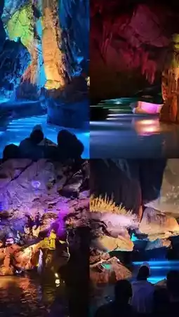 Board a small wooden boat into the cave! A guide at the bow leads the way. The 40-minute journey feels like traveling through the earth’s core, passing seven wonders including "Penglai Fairy Island."