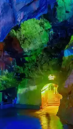 Two shows daily at 14:00 and 16:00! The cave transforms into an underwater dragon palace, with lasers projecting illusions of swimming whales.
