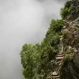 The trails in the mountain are flanked by dense forests. Upon reaching a viewing platform, the sea of clouds before you rolls like waves, resembling a heavenly realm. The white clouds flow through the valleys, compelling me to raise my camera and capture this fleeting beauty.