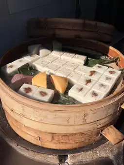 At 7:30 AM, we took a peaceful morning stroll. Unlike the bustling daytime, the alleys were quiet, as only guests staying inside the scenic area could roam around. Breakfast was a spread of local delicacies like osmanthus cakes, and everything was self-serve & unlimited—absolutely delicious!