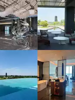 The hotel also offers unique experiences like sound bowl meditation sessions, a fitness center, an indoor heated pool, and an outdoor infinity pool. The second-floor "Dream Like a Dream" bar features live jazz music.