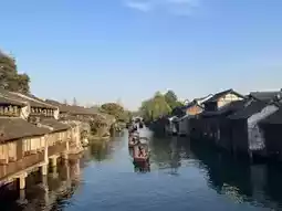 Wuzhen, a picturesque water town in Zhejiang Province, China, is known for its serene canals, traditional architecture, and charming cobblestone lanes. Here's a description of a normal beautiful day in Wuzhen: