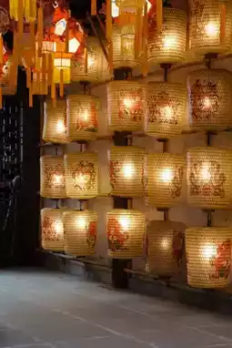 As night falls, warm yellow lights outline the ancient town's silhouette. Moonlit bridges sway gently under lantern glow, while Hanfu shops, teahouses, and storytelling venues blend tradition with modernity. Puyuan quietly tells its story, woven between history and the present.