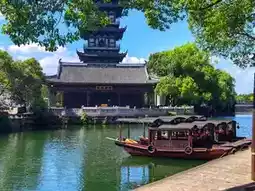 Di Shang Resort Hotel is Wuzhen's new high-end art resort, located within the West Scenic Zone. With a "boat trail" design theme, its three interconnected buildings resemble ships docked in a harbor, offering views of both the canal and ancient town. The rooftop infinity pool provides stunning vistas, including breathtaking night views of the White Lotus Pagoda.