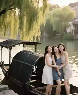 3. Wupeng boat experience: Choose the bow seat, gently rest your hand on the boat’s edge, let the boatwoman row slowly, capture the moment the wind blows your hair, with white walls and black tiles on both sides as the background—amazing