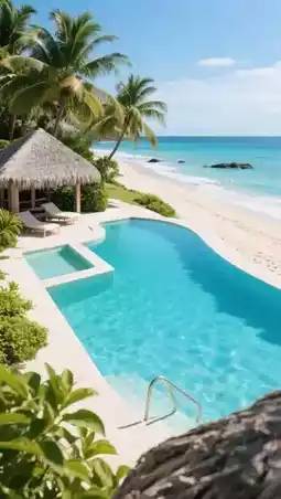 - Private pool + private beach, ¥1680/night → ¥840/person (double occupancy)